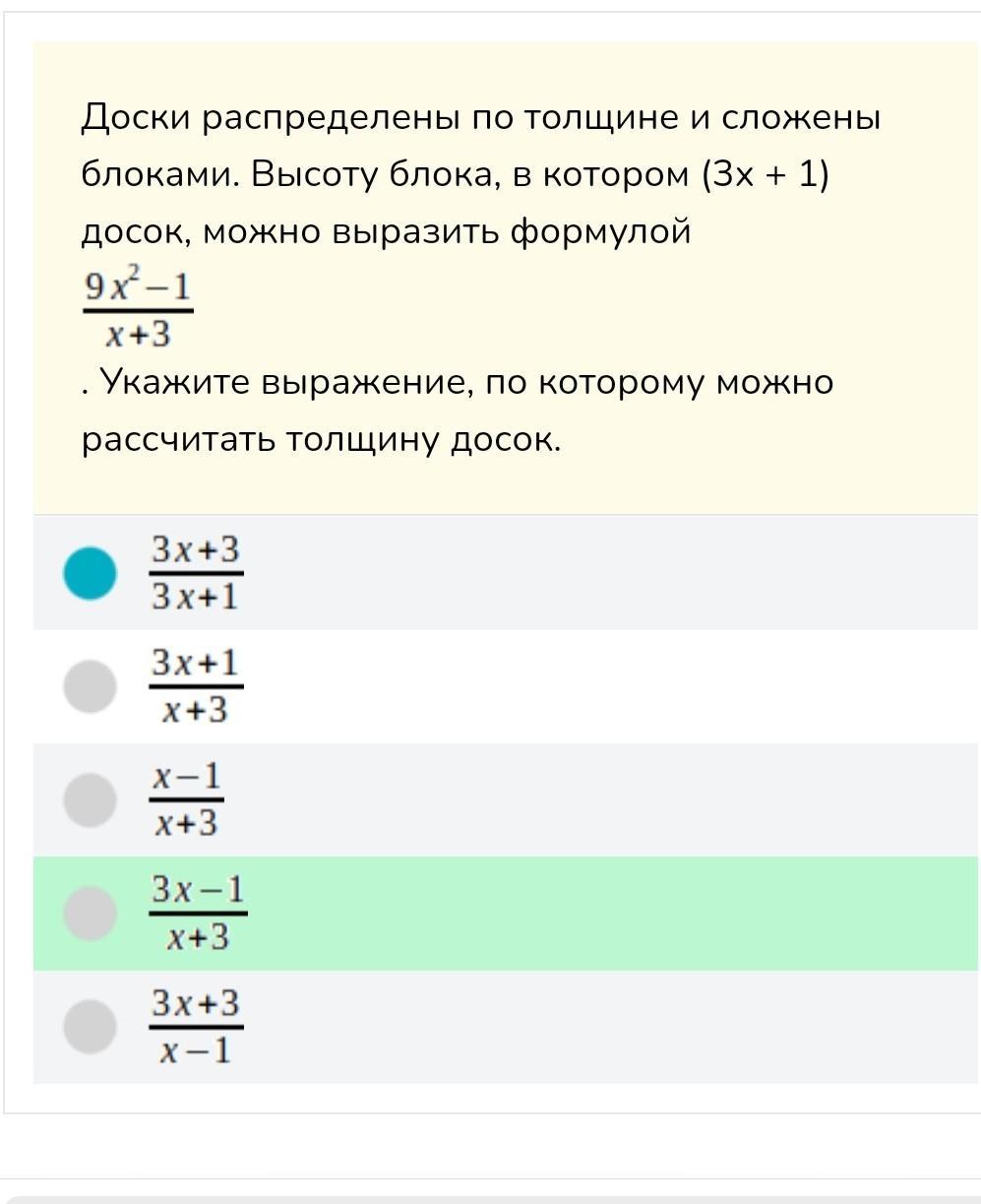 ответ 4 потомучто знаменатель так и остается а 9х² решаем и ответ 3х-1 (-1 как и х всегда остается)