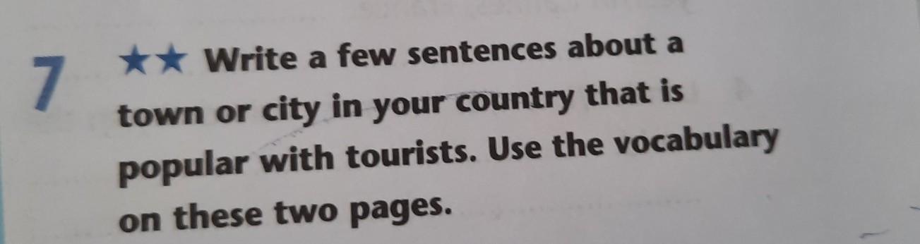 7 ** Write a few sentences about a town or city in your country that is popular with tourists. Use the vocabulary on these two pages.