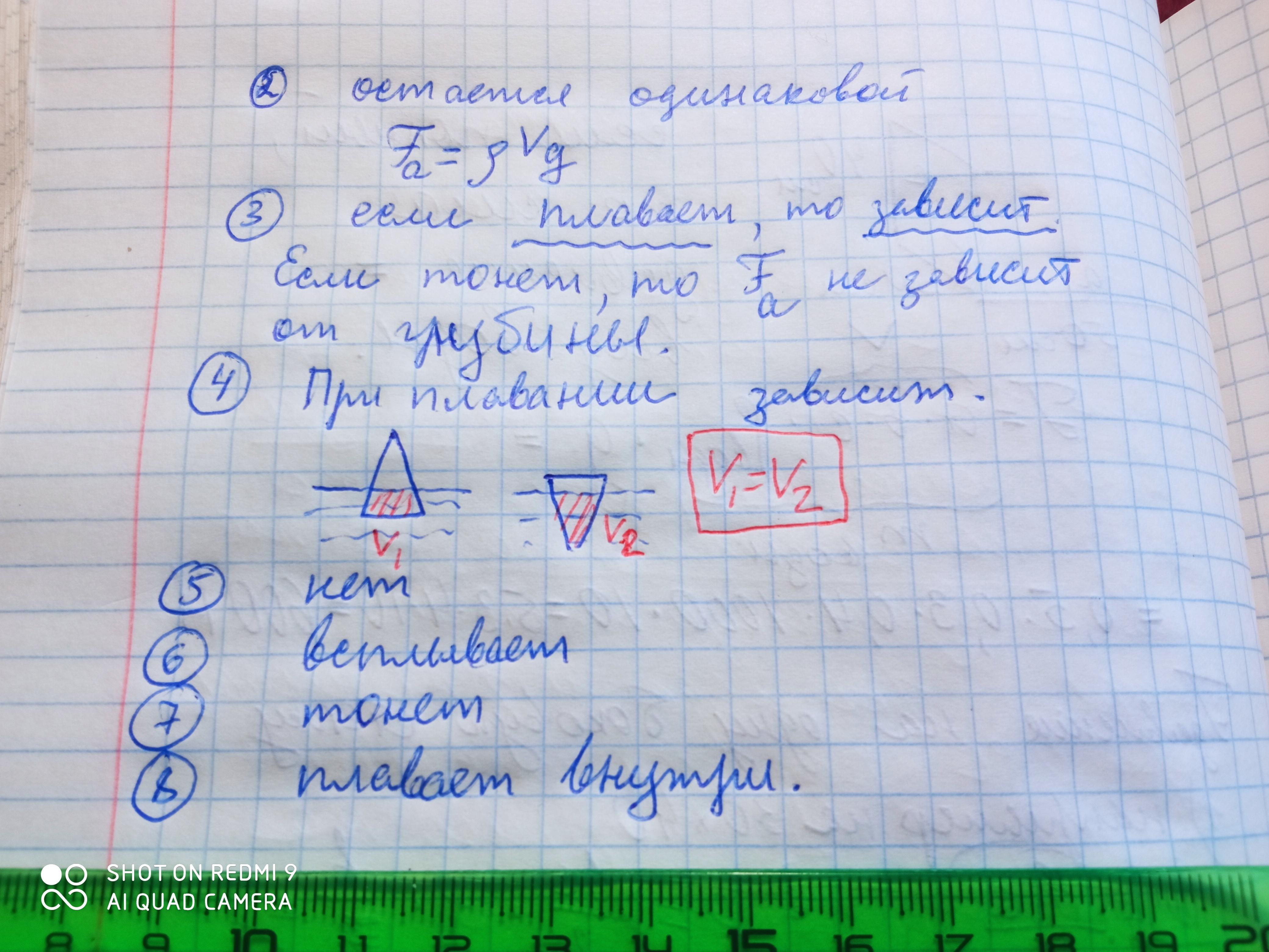 4. Глубина погружения тела в жидкость (зависит, не зависит) от формы самого тела