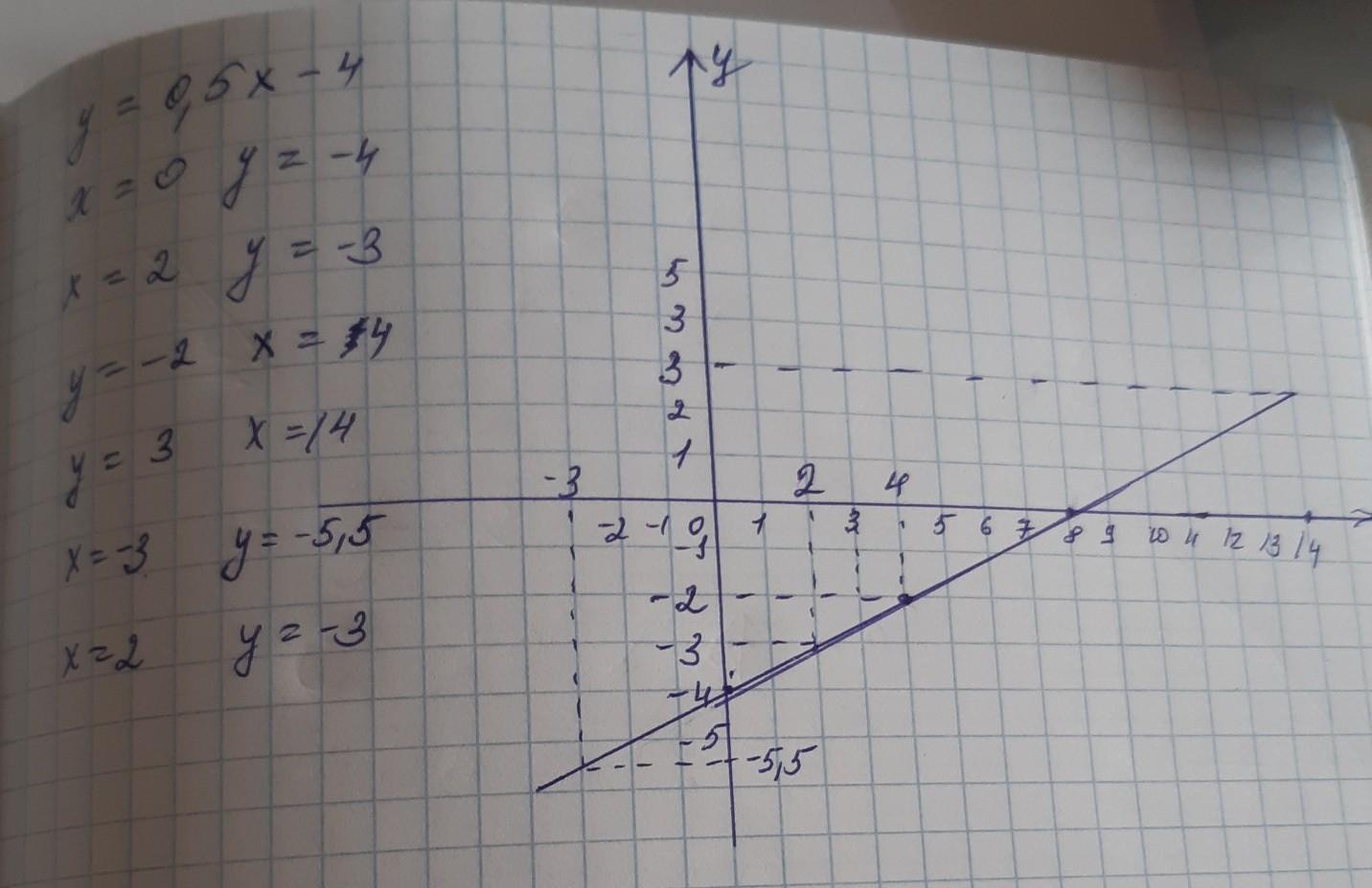 Побудуйте графік функції у = 0,5х – 4. За допомогою графіка