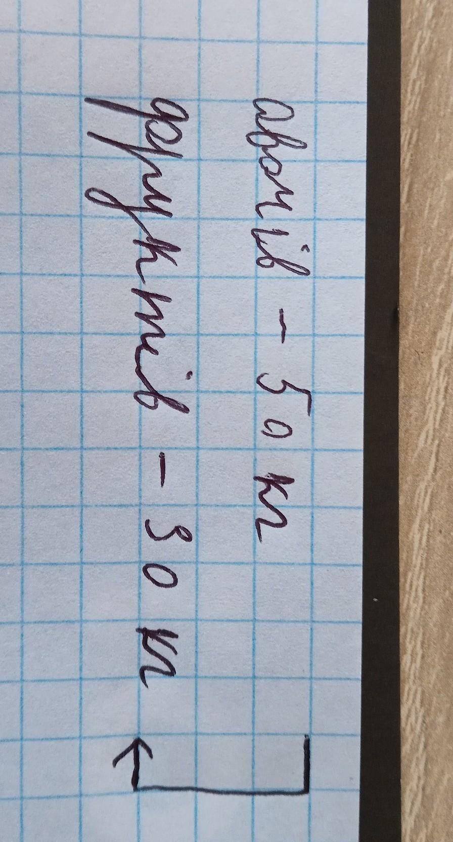 У магазин привезли 50 кг овочів,а фруктів 30 кг. На скільки більше привезли овочів ніж фруктів?