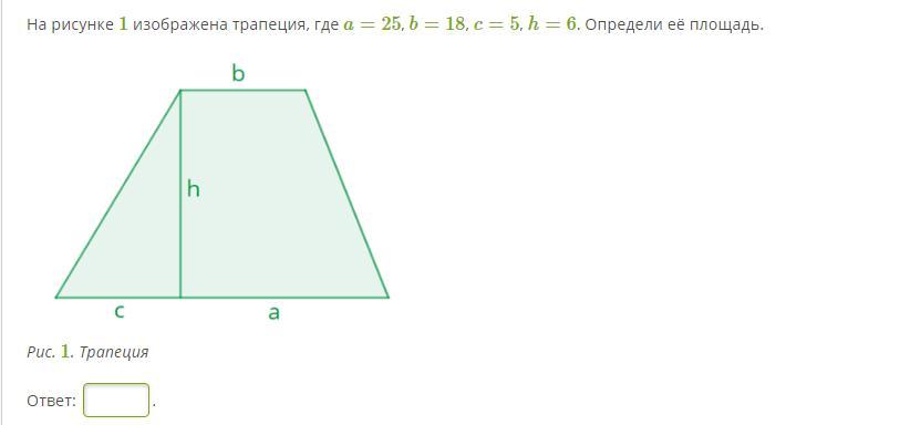 а разве формула площади трапеции не S = (1/2*h) * (a + b)