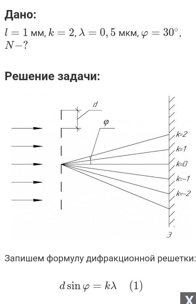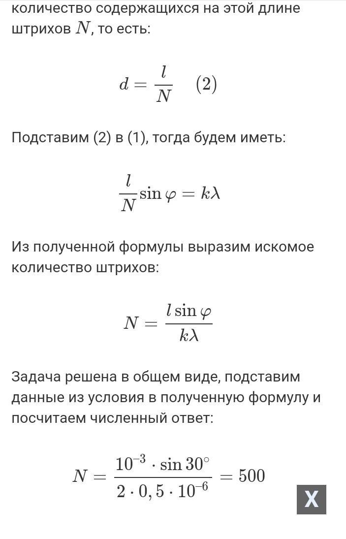 Сколько штрихов содержит дифракционная решётка шириной 1 см, если для света с длиной волны 0,5 мкм максимум второго порядка наблюдается под углом 30°?