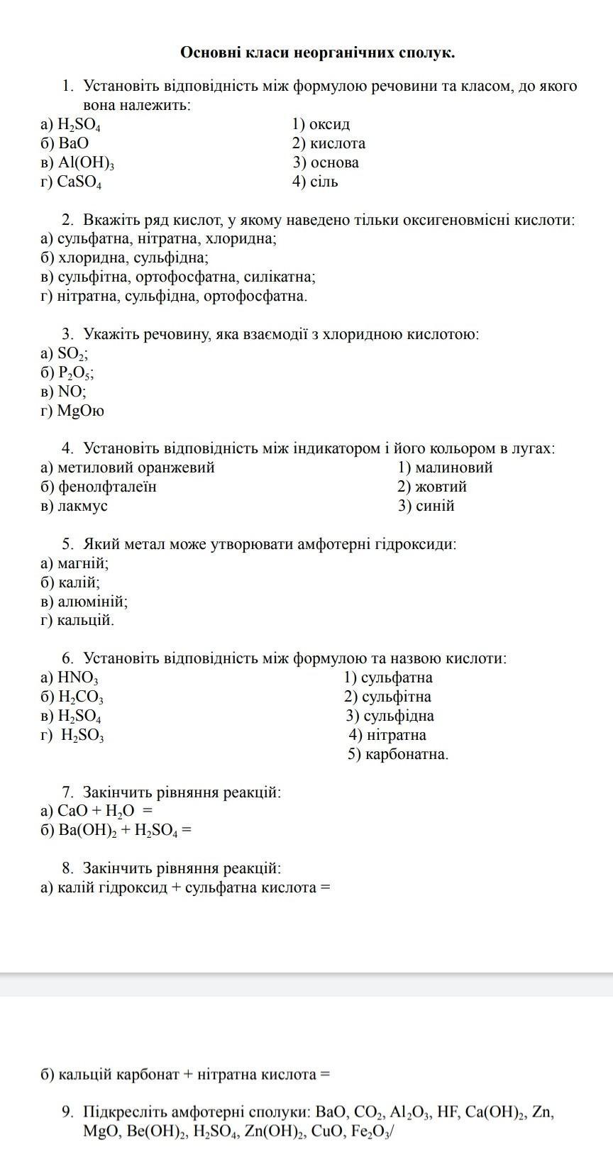 9.BaO, Al2O3, Ca(OH)2, MgO, Be(OH)2, Zn(OH)2.