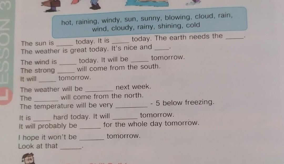 Look at the pictures for clues and complete the sentences with the words from the box.