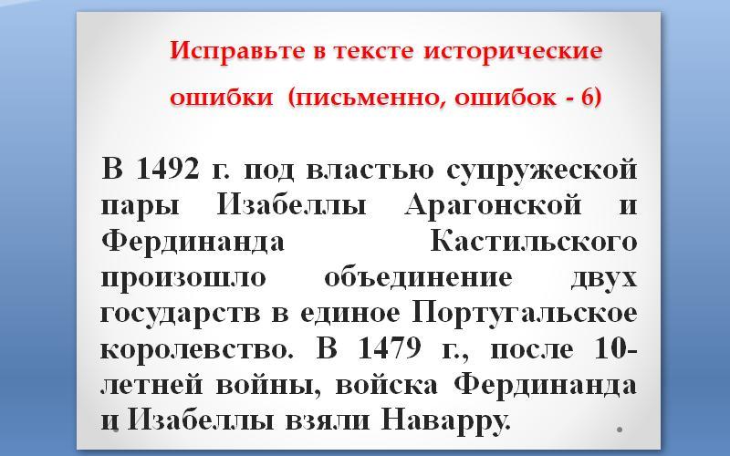 Відповідь: Изабелла Кастильская, Фердинанд Арагонский, объединение в Испанию,
