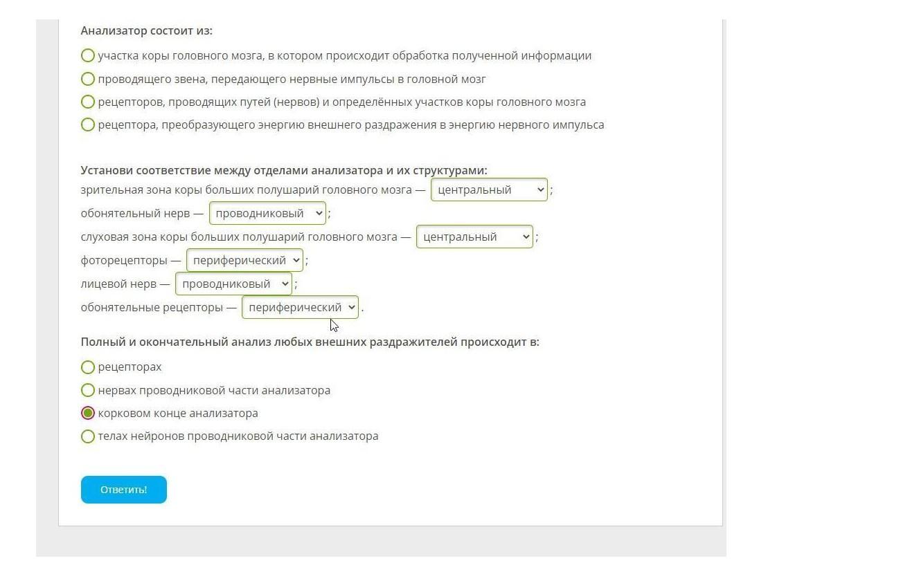 Объяснение: Аналізатор (по І.П.Павлову) - це функціональна система, що складається з рецептора, чутливого провідного шляху і зони кори, куди проектується даний вид чутливості.