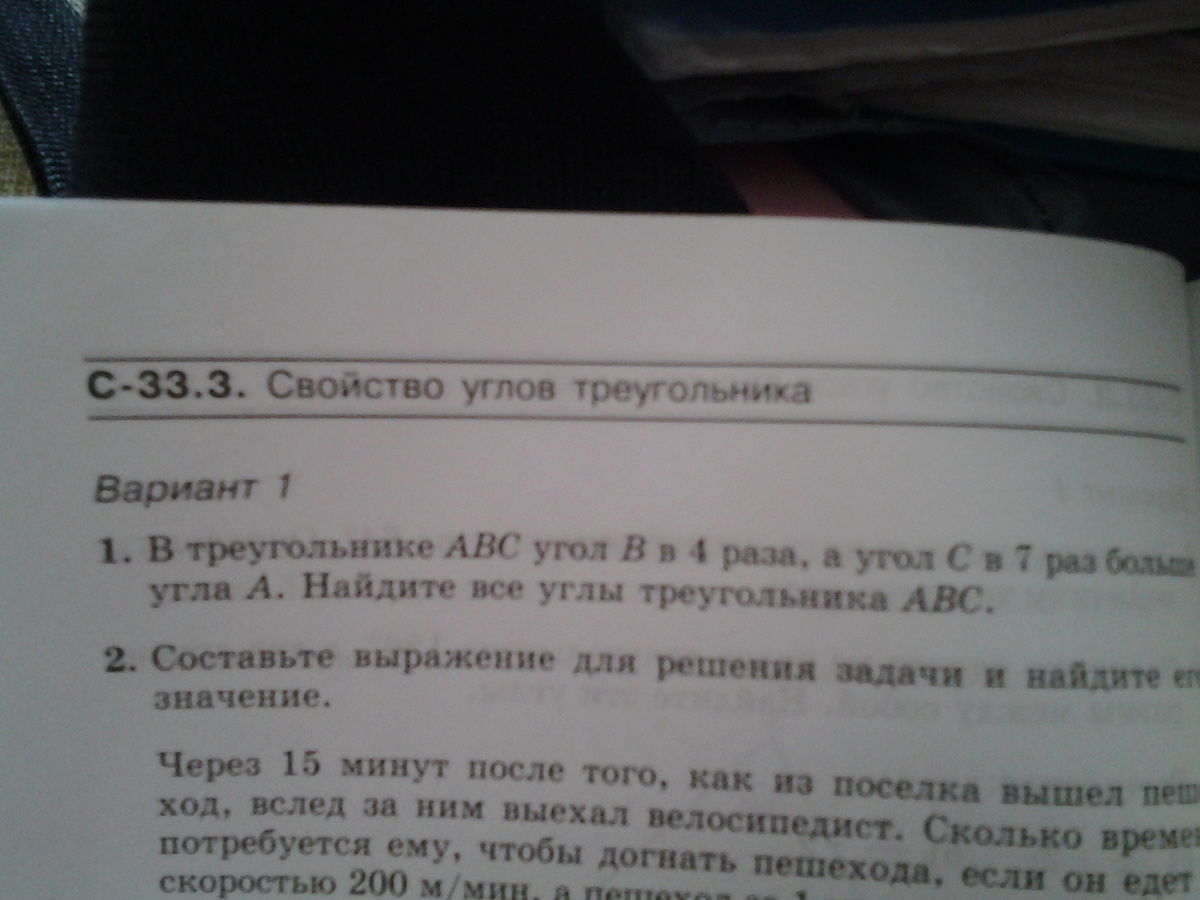 пусть угол А-х, тогда В-4х, а С-7х. сумма всех углов равна х+4х+7х. Составлю и решу уравнение:
