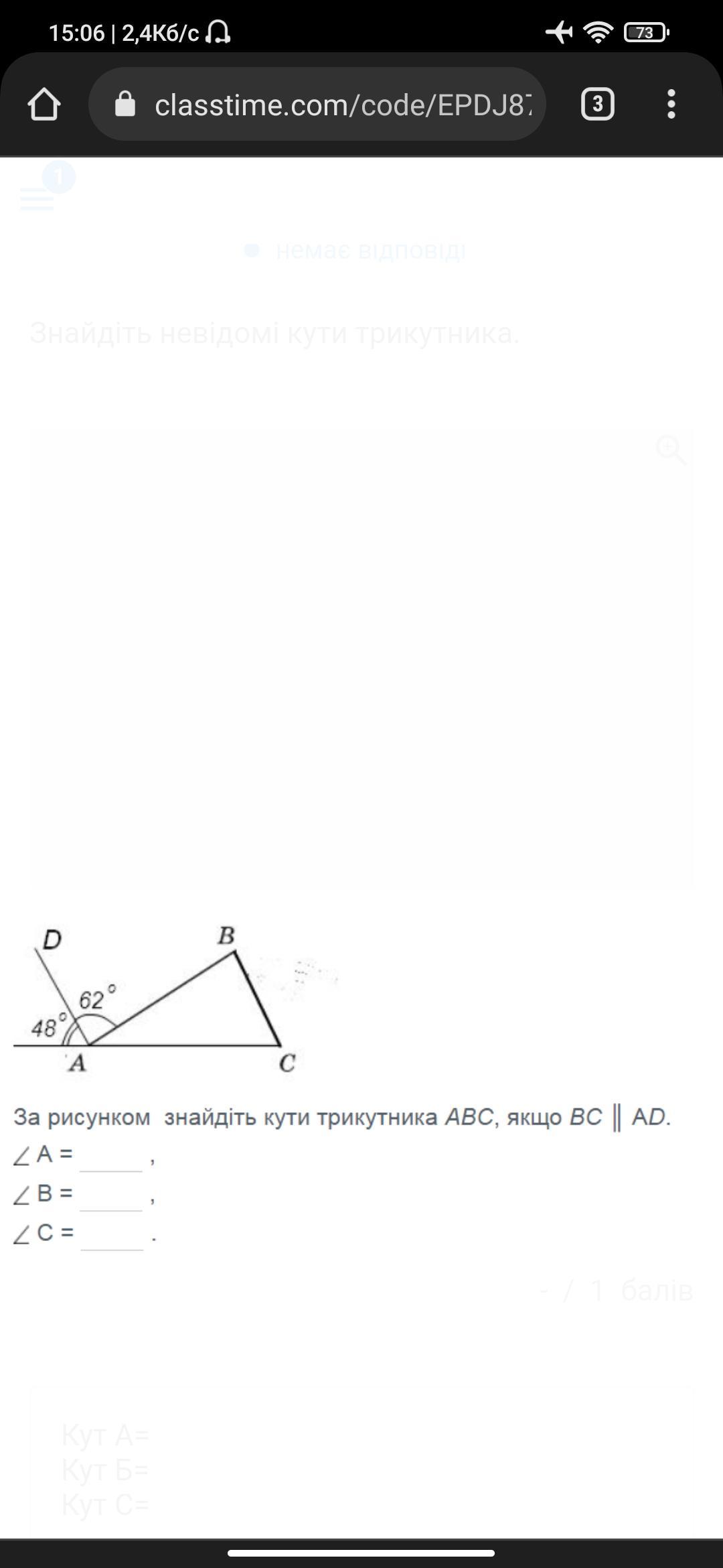 3) ∠В = ∠DAB = 62°