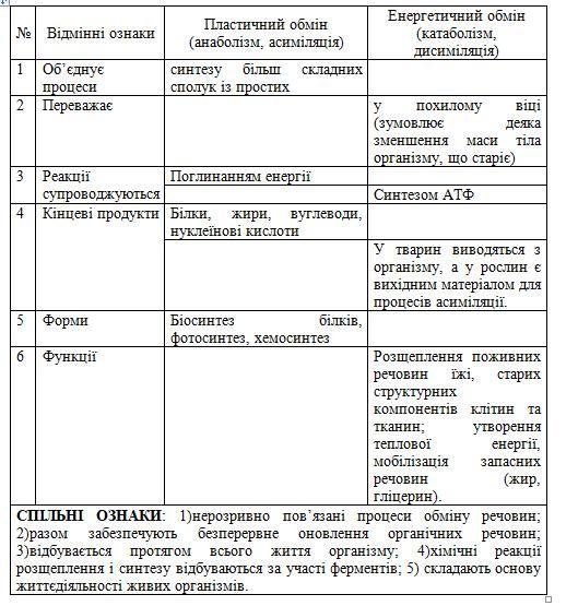 Заповнити пропуски у таблиці Порівняльна характеристика пластичного та енергетичного обміну»