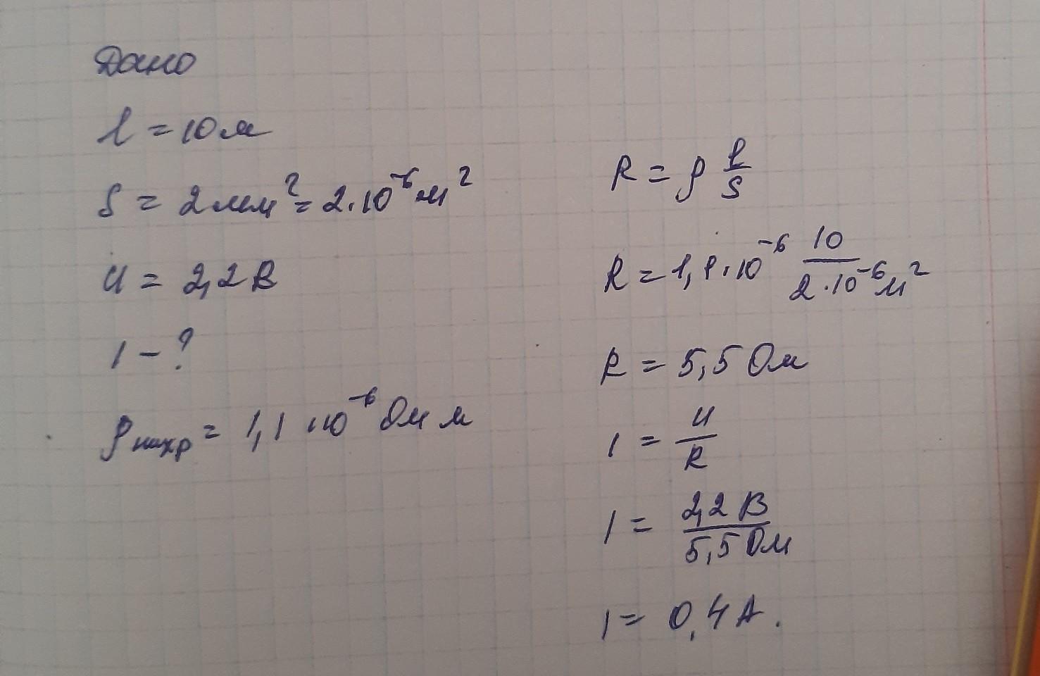 ніхромова дротина завдовжки 10 см і площею поперечного розрізу 2мм під'єднана до джерела з напругою 2,2 В. Яка сила струму , що проходить по дротині