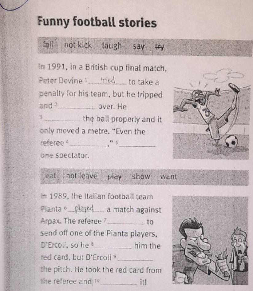 1) tried 2) fall 3) didn't kick 4) laughed 5) said