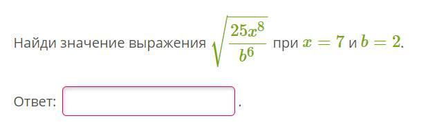 √25x⁸/b⁶=5x⁴/b³ при x=7 ; b=2 будет 5•7⁴/2³=5•2401/8=12005/8=1500 5/8