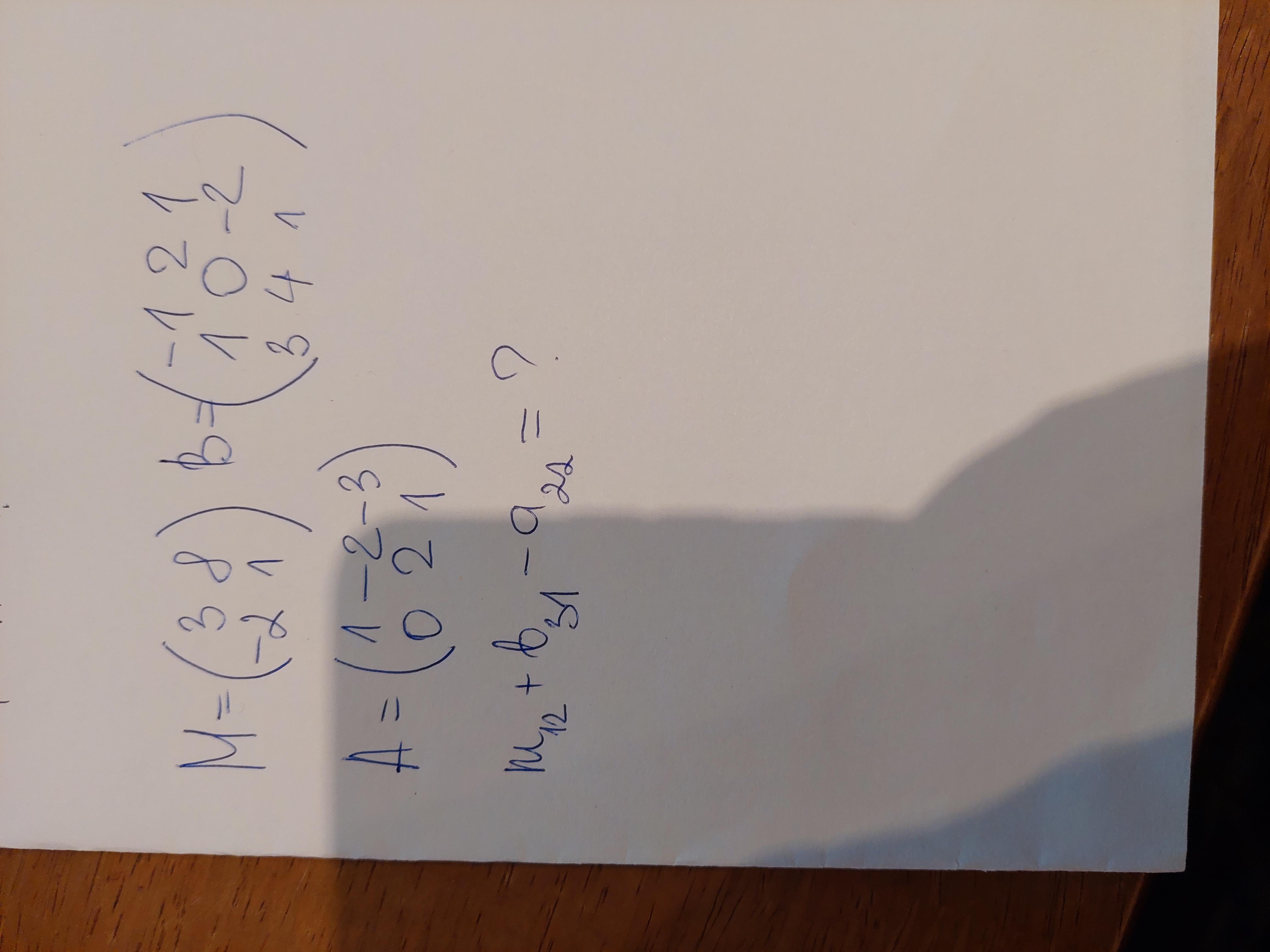 m₁₂ + b₃₁ - a₂₂ = -2 + (-4) + 0 = -6