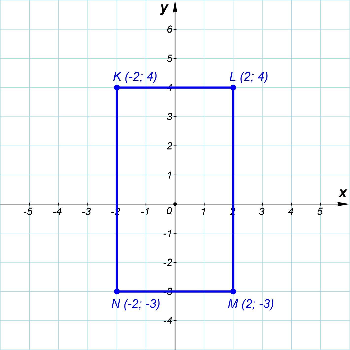 Начертите на координатной плоскости прямоугольник KLMN, если известно, что к(-2;4): М(2;-3). N(-2; 3) Площадь прямоугольника KLMN paвна...