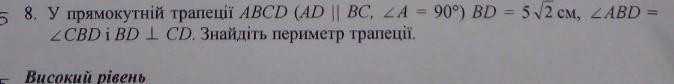 на русском:в прямоугольной трапеции (на фото само задание). найдите периметр трапеции.