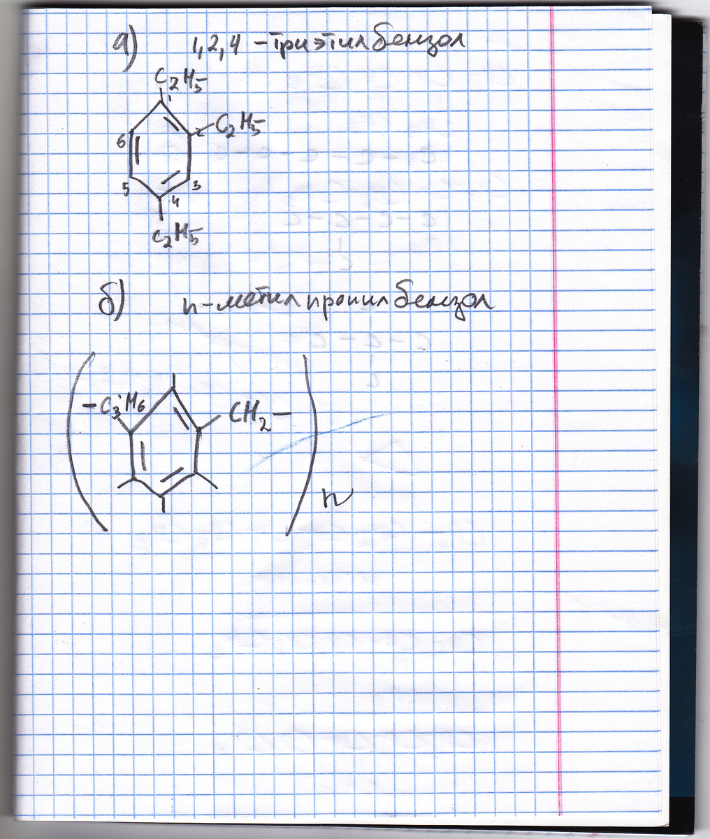 напишите структурные формулы следующих соединений: а) 1,2,4- триэтилбензон б) n-метилпропилбензол.