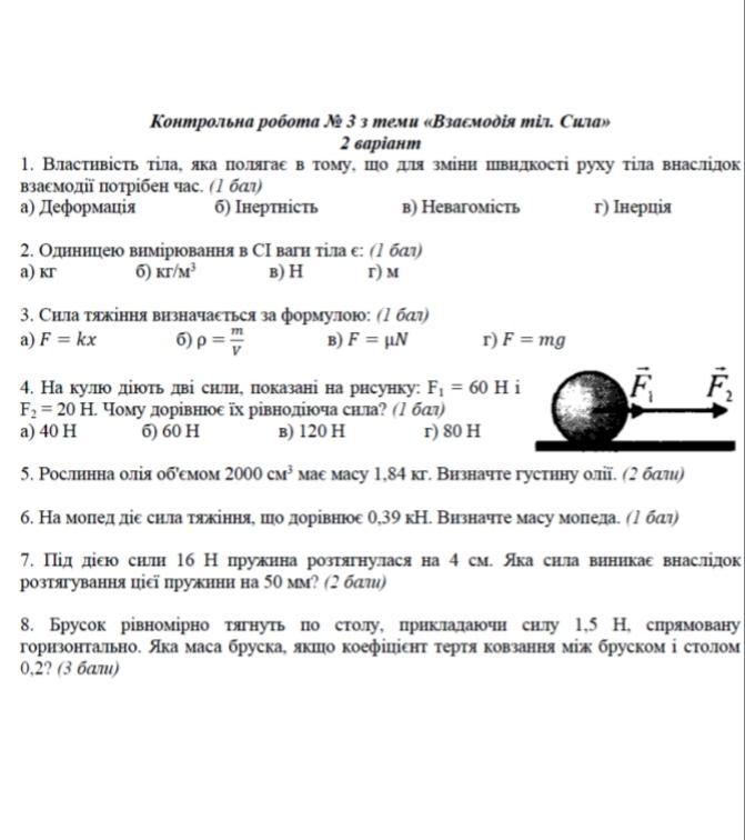 2-а; 3-г; 4-г (60Н+20Н=80Н так как силы направлены в одну сторону)