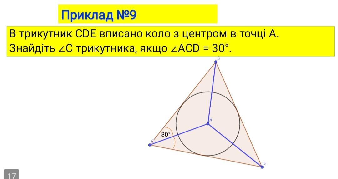 Пояснення: центр кола вписаного у трикутник знаходиться на перетині бісектрис.