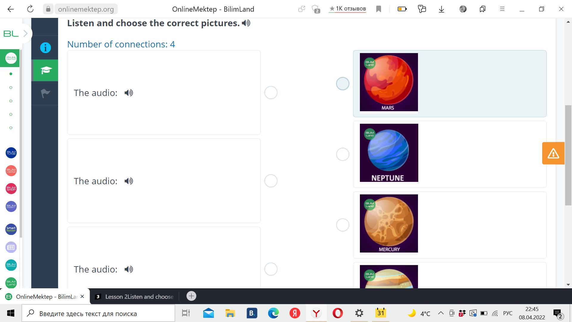 Привет. Если говорит аудио (любое ) Марс То ты соединяешь его с красной планетой