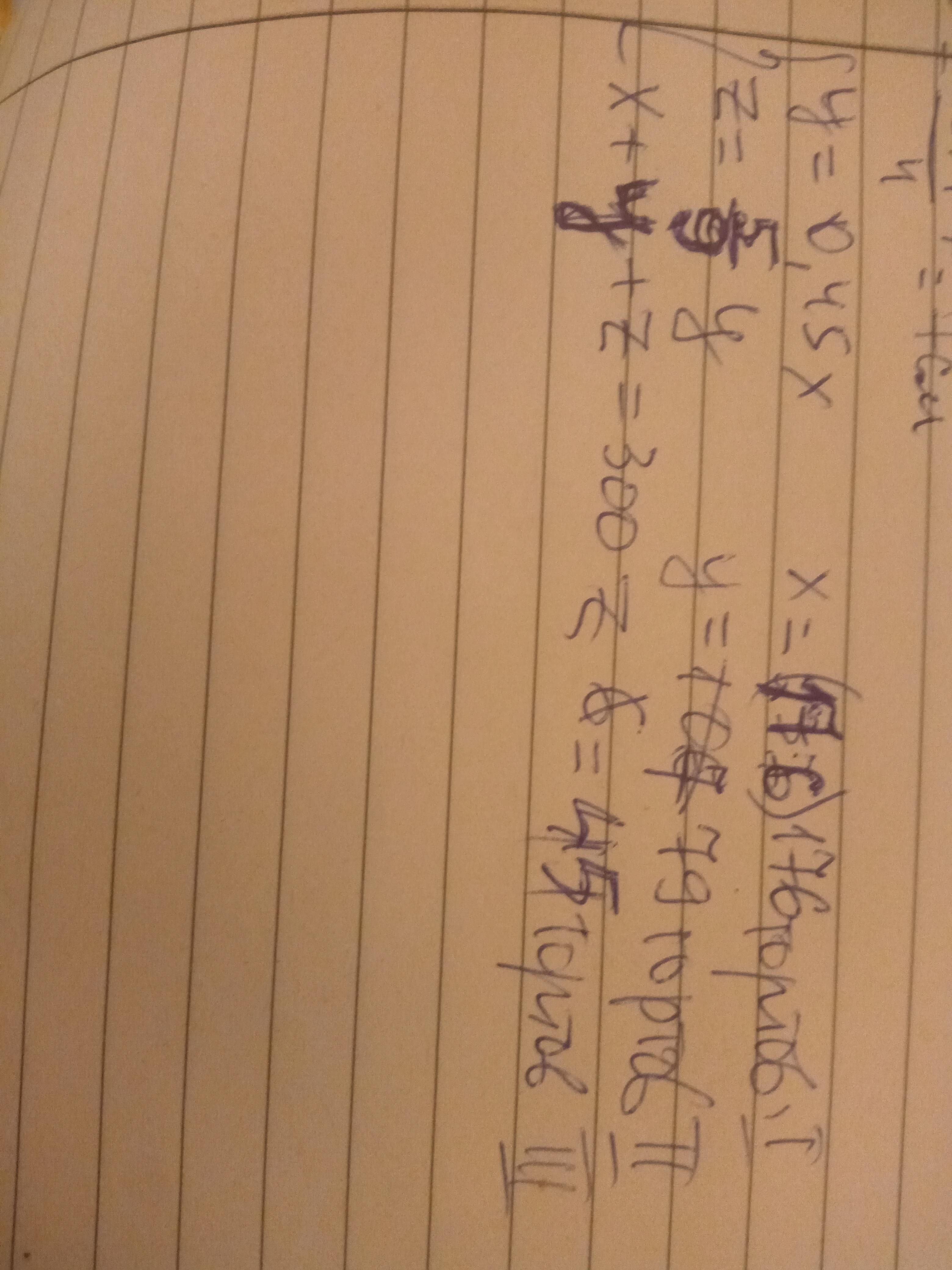 В три магазина завезли триста тортов. Количество тортов, при- везённых во второй магазин, составляет сорок пять процентов ко- личества тортов, завезённых в первый магазин. Количество тортов в третьем магазине составляет пять девятых количества тортов во втором.