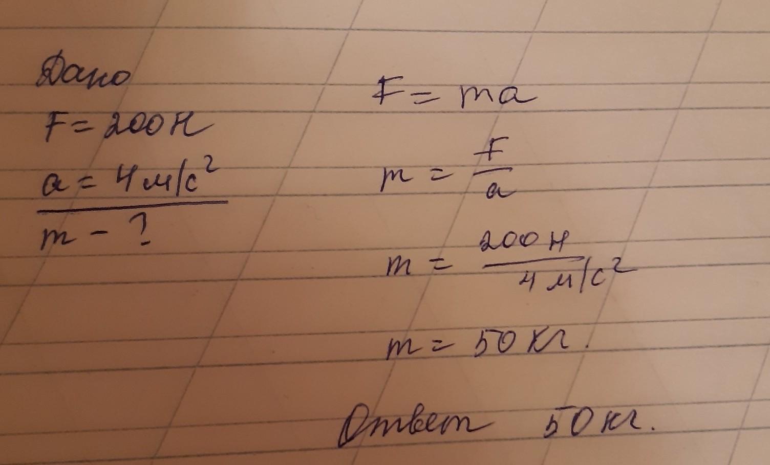 Сила величиною 200 Н надала тілу прискорення 4 м/с