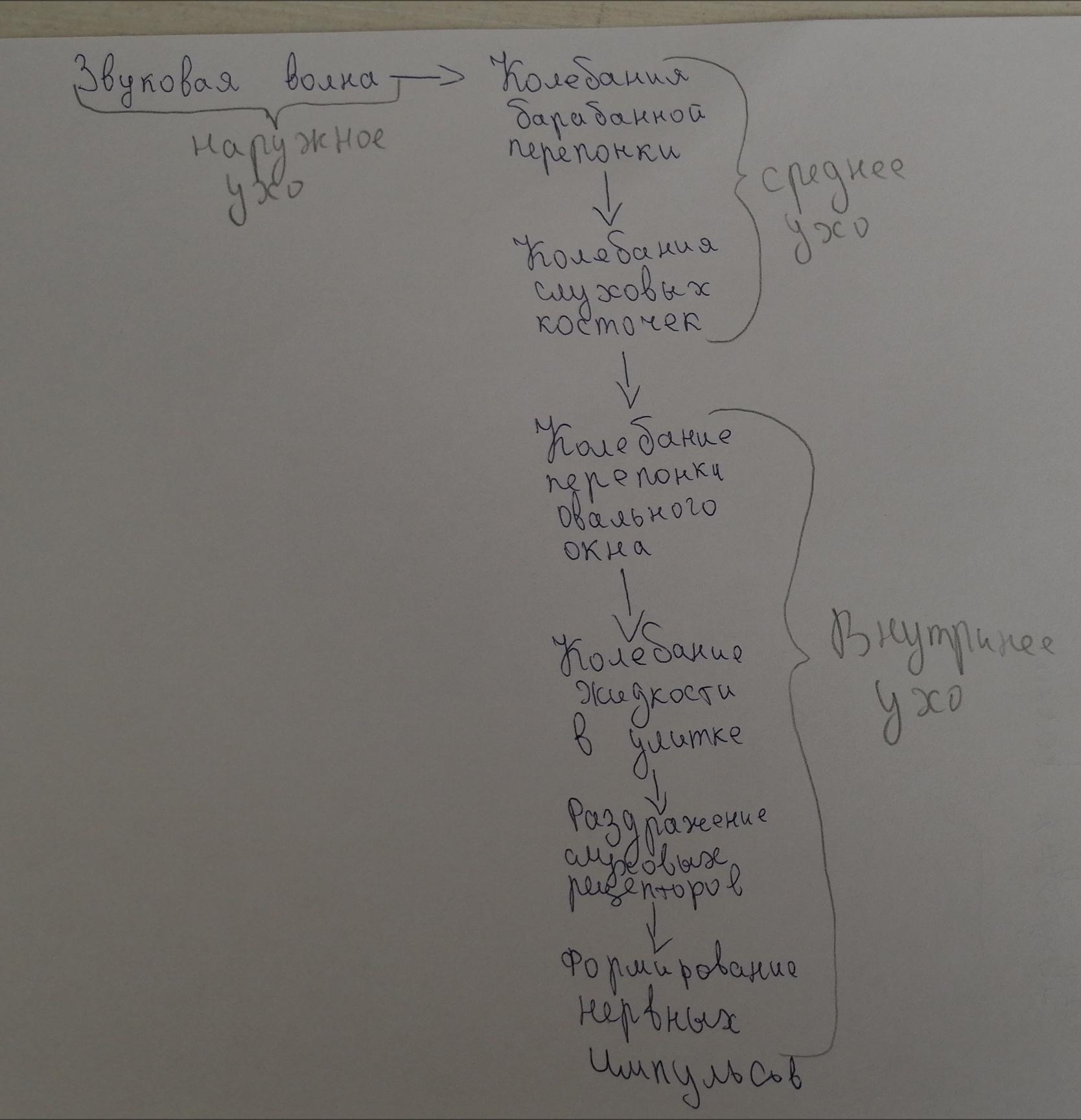 Установи верную последовательность передачи звуковой информации в слуховом анализаторе.
