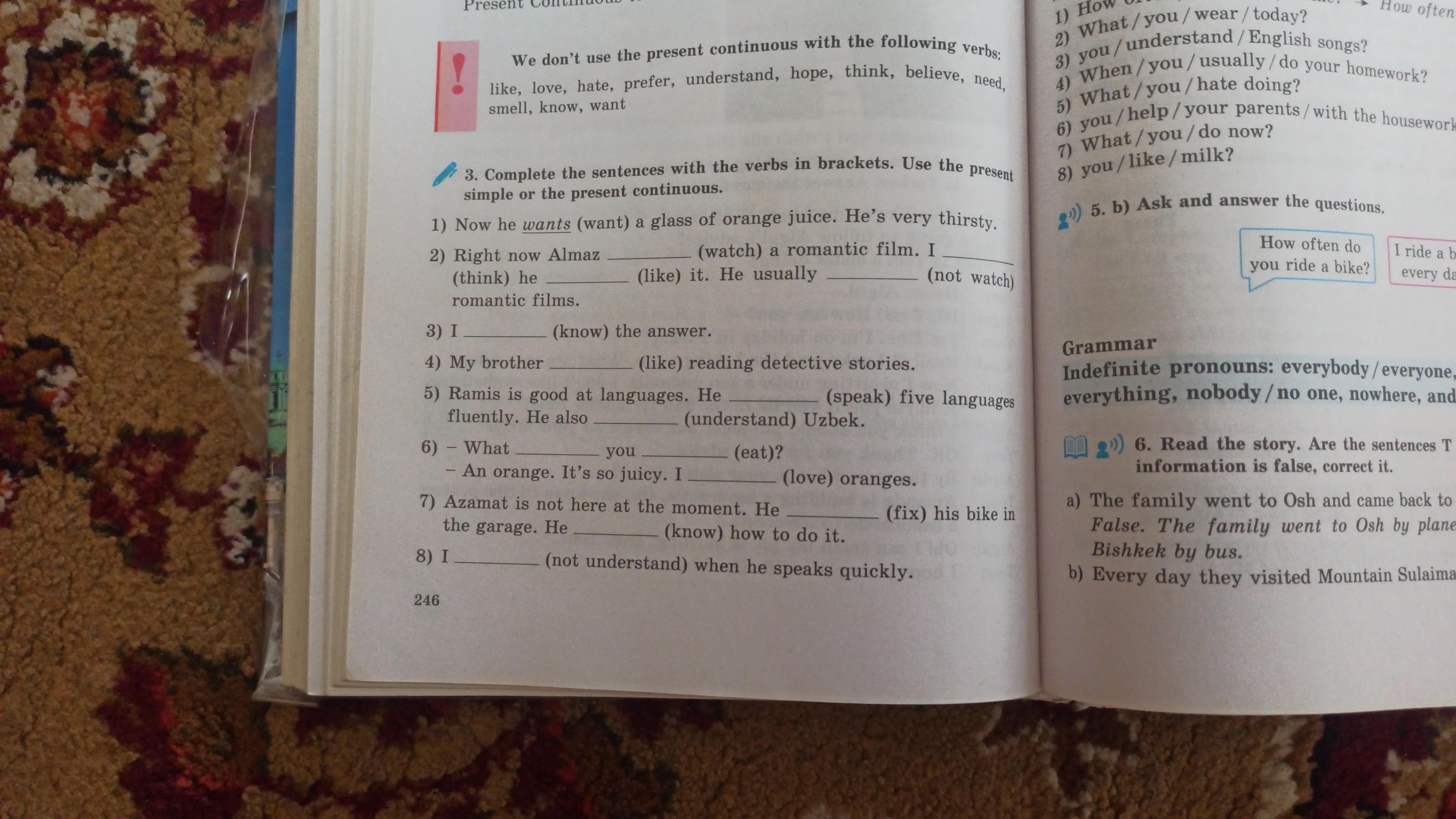 2.watch 3.think 4.likes 5.don't watch 6.know 7.likes 8.speaks 9.understand 10.do...eat 11.love 12.fixs 13.knows 14.don't understand