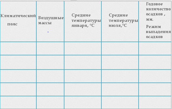 климатический пояс воздушные массы средние темпер. годовое кол. осадков