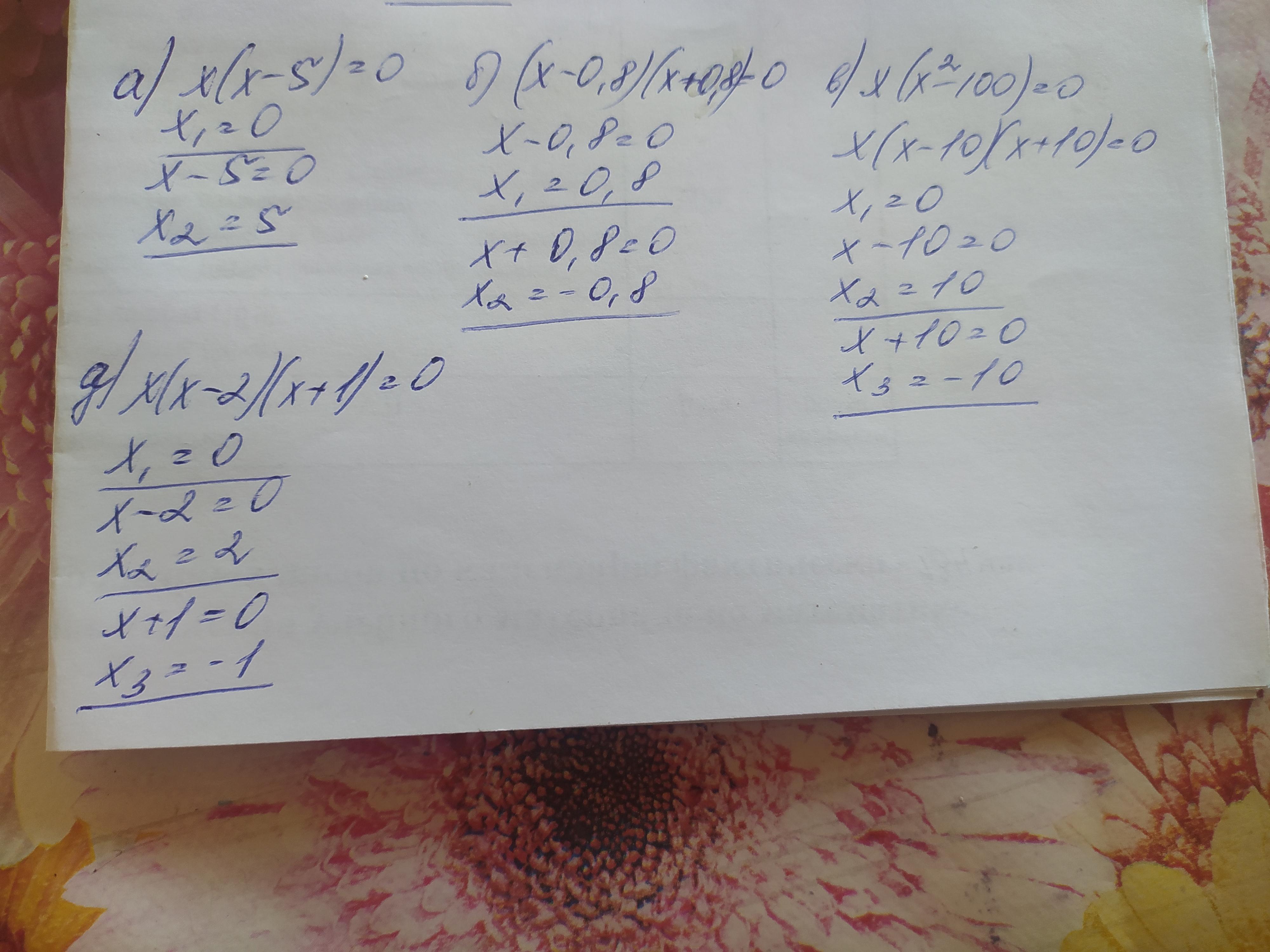 решите уравнения а)х²-5х=0 б)х²-0, 64=0 в) х³-100х=х г) х³+100х=0 д) х(х-2) (х+1) помогите пожалуйста