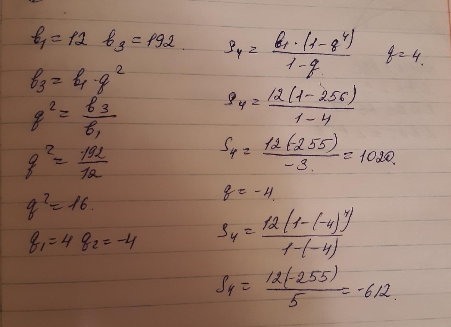 Вычислил сумму первых четырёх членов геометрической прогрессии, если b1=12, b3=192