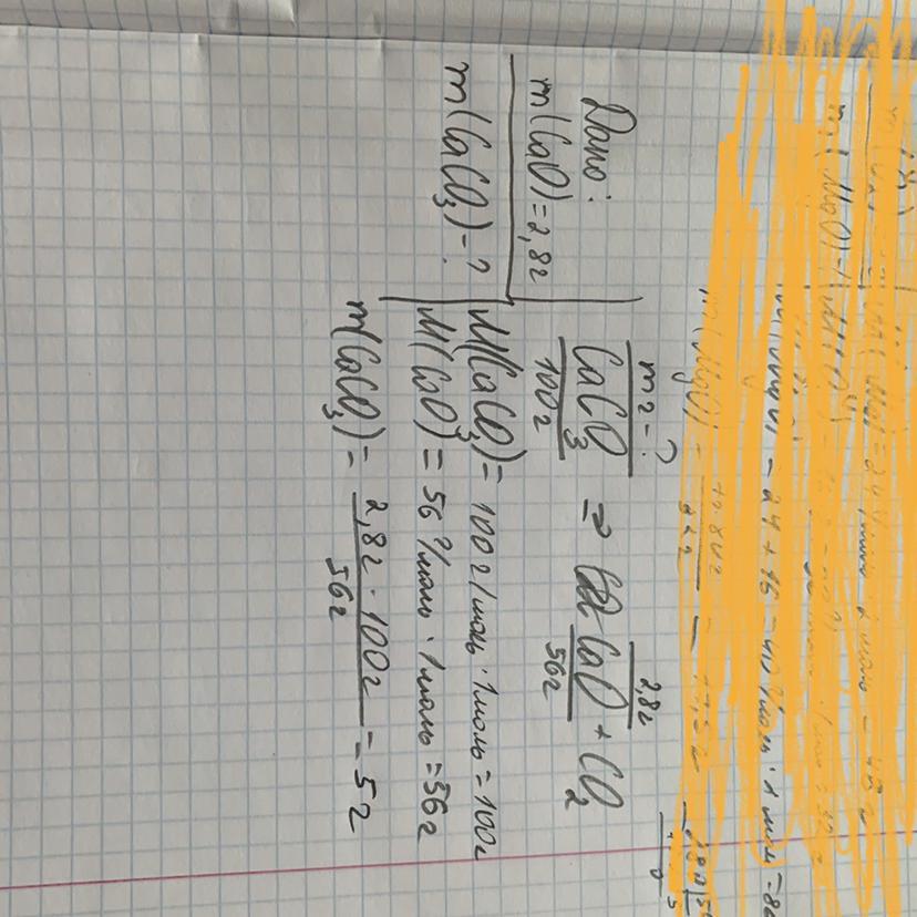 При термічному розкладі кальцій карбонату утворився кальцій оксид масою 2,8 г. Яка маса кальцій карбонату потрібна для розкладу?