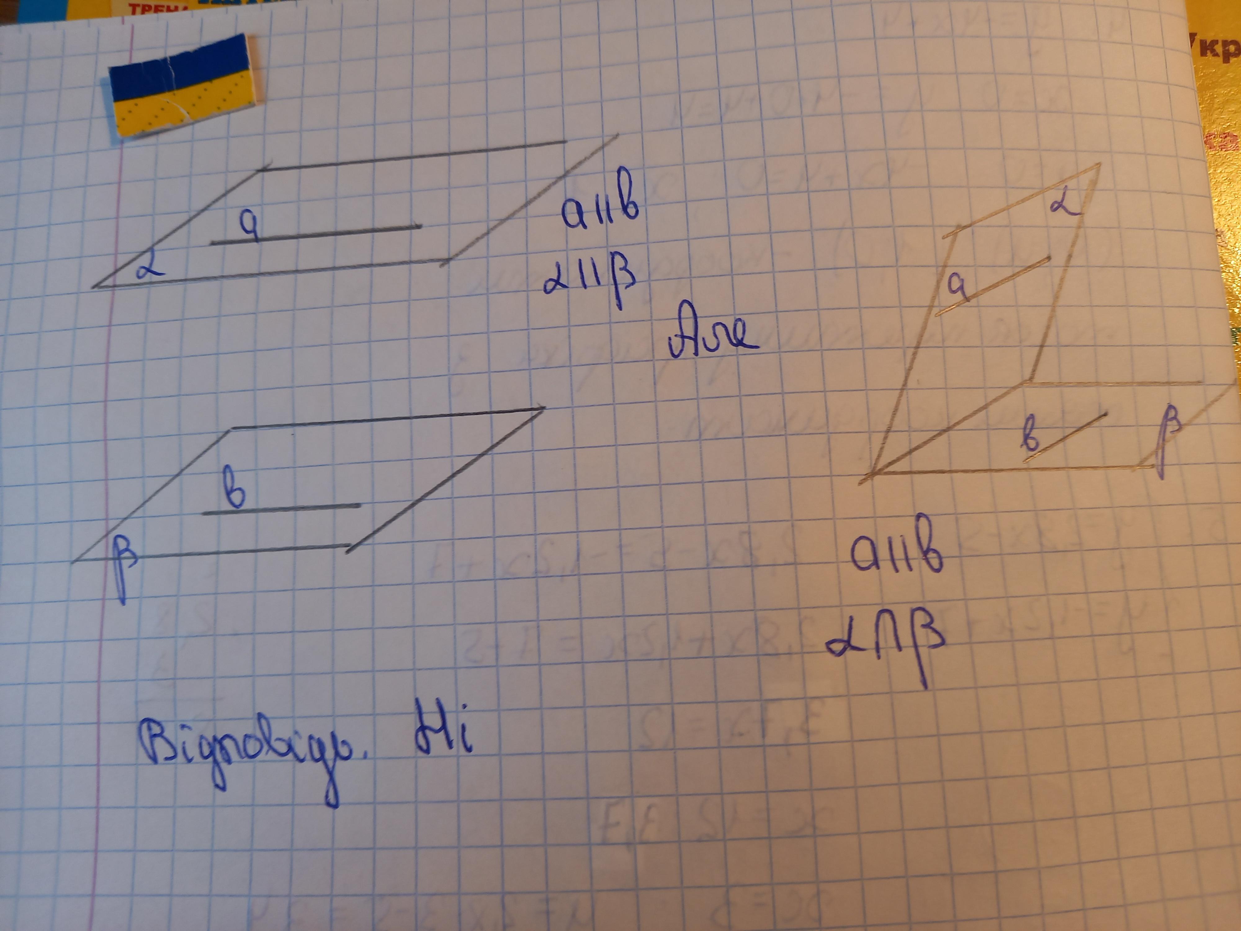 Чи правильне твердження"Площини паралельні , якщо пряма,яка лежить в одній площині, паралельна прямій другої площини?