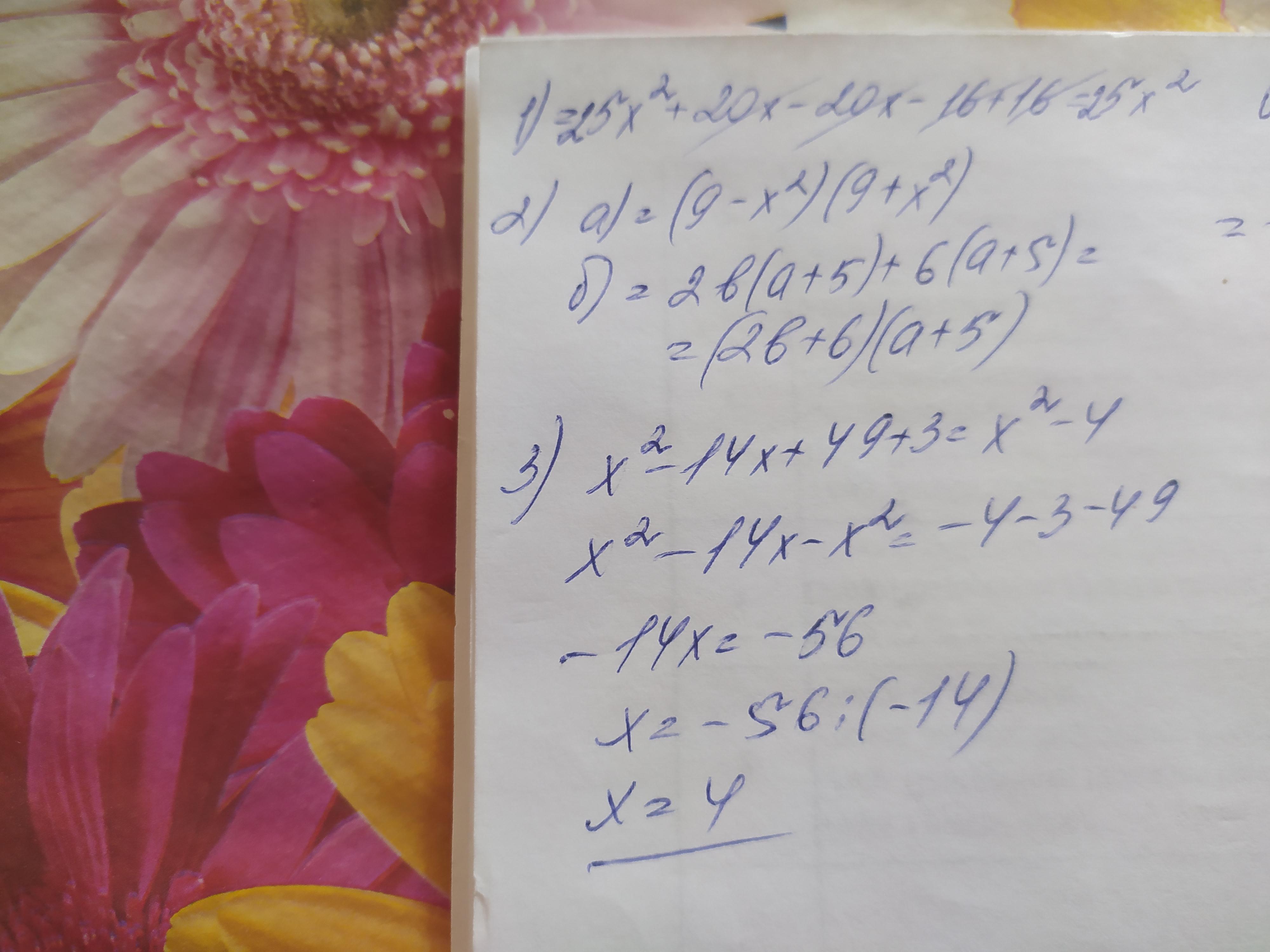 №1 Упростите выражение: (5х-4)(5х+4)+16.