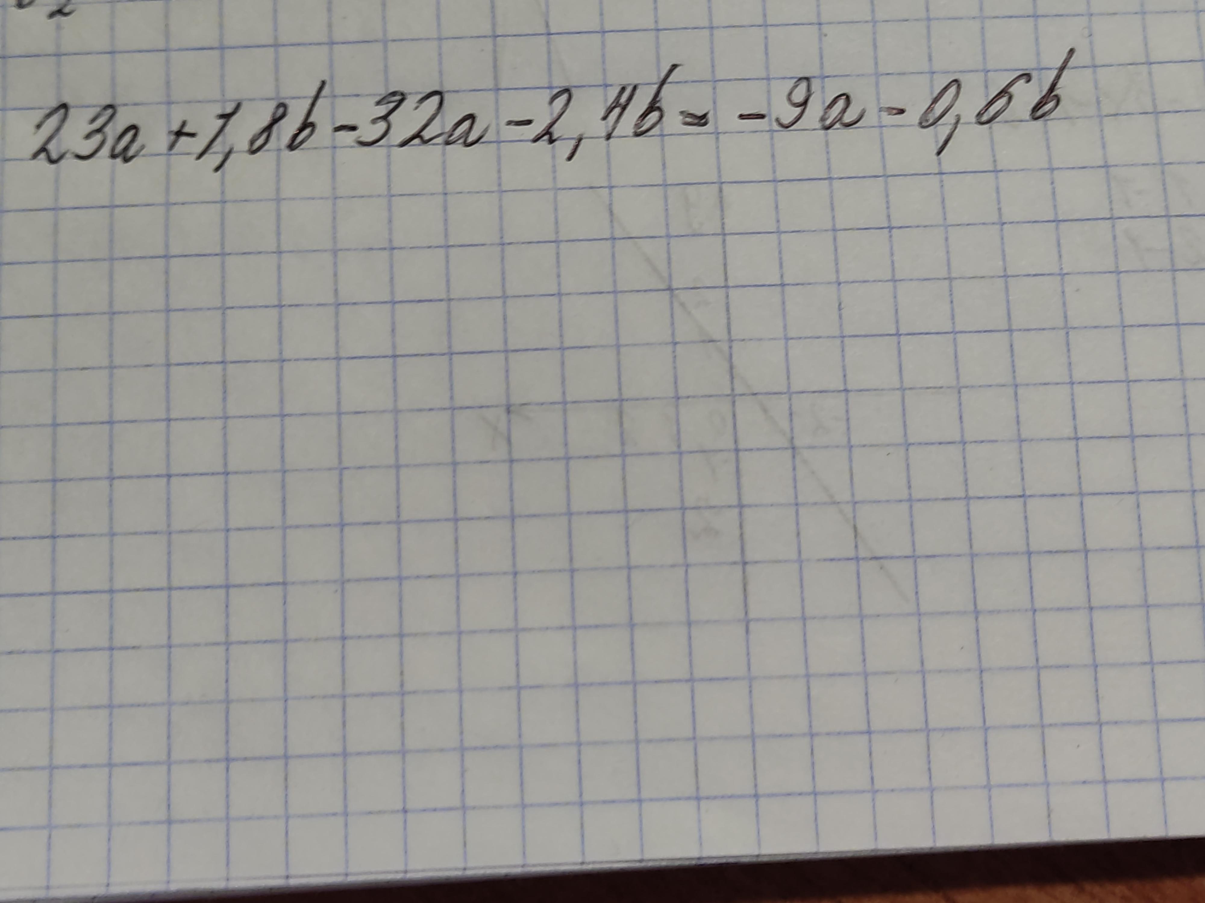 23а + 1,8b – 32a - 2,4b = 23a - 32a + 1,8b - 2,4b = -9a - 0,6b