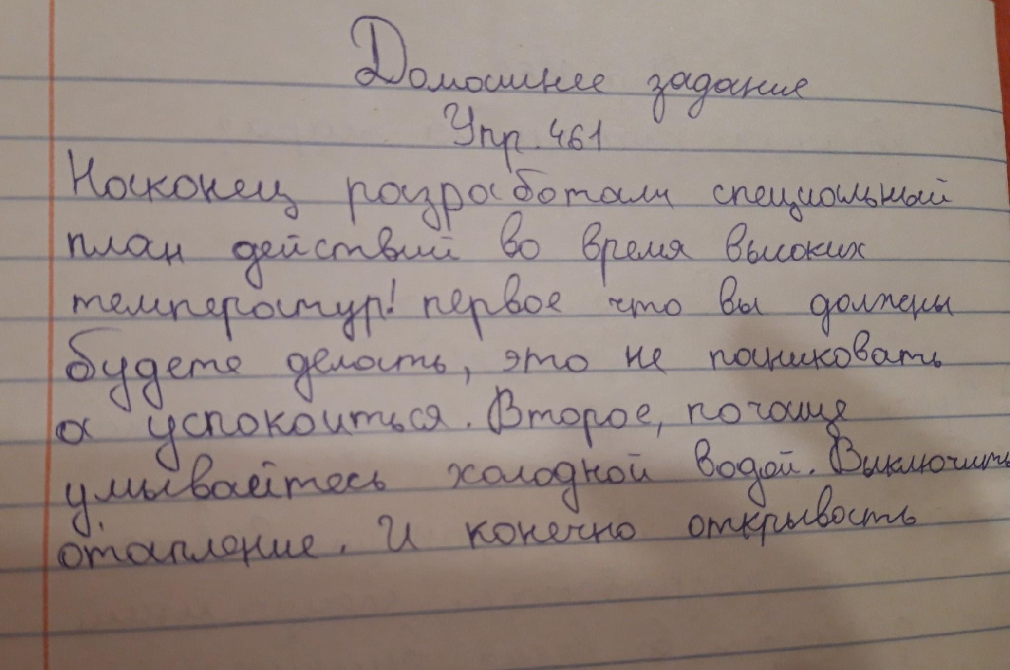 461. Напишите эссе-описание (1) или эссе-рассуждение одну из тем. Разработан специальный план действий во время температур. Экстремальная жара — проблема разрешимая.