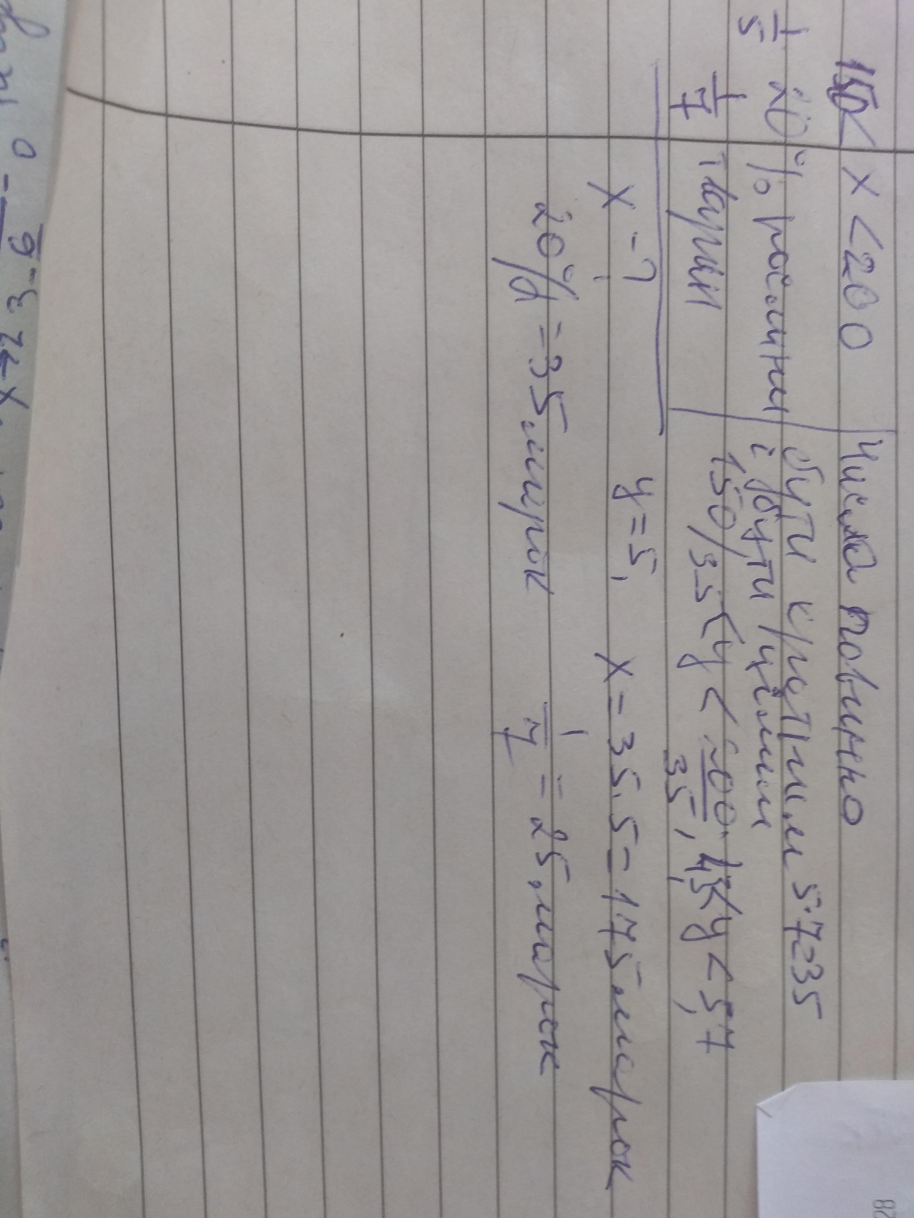 Кількість марок у Романа більша за 150, але менша за 200. 20% з них це марки з зображенням рослин, а 1/7-тварин. Скільки усього марок у Романа?