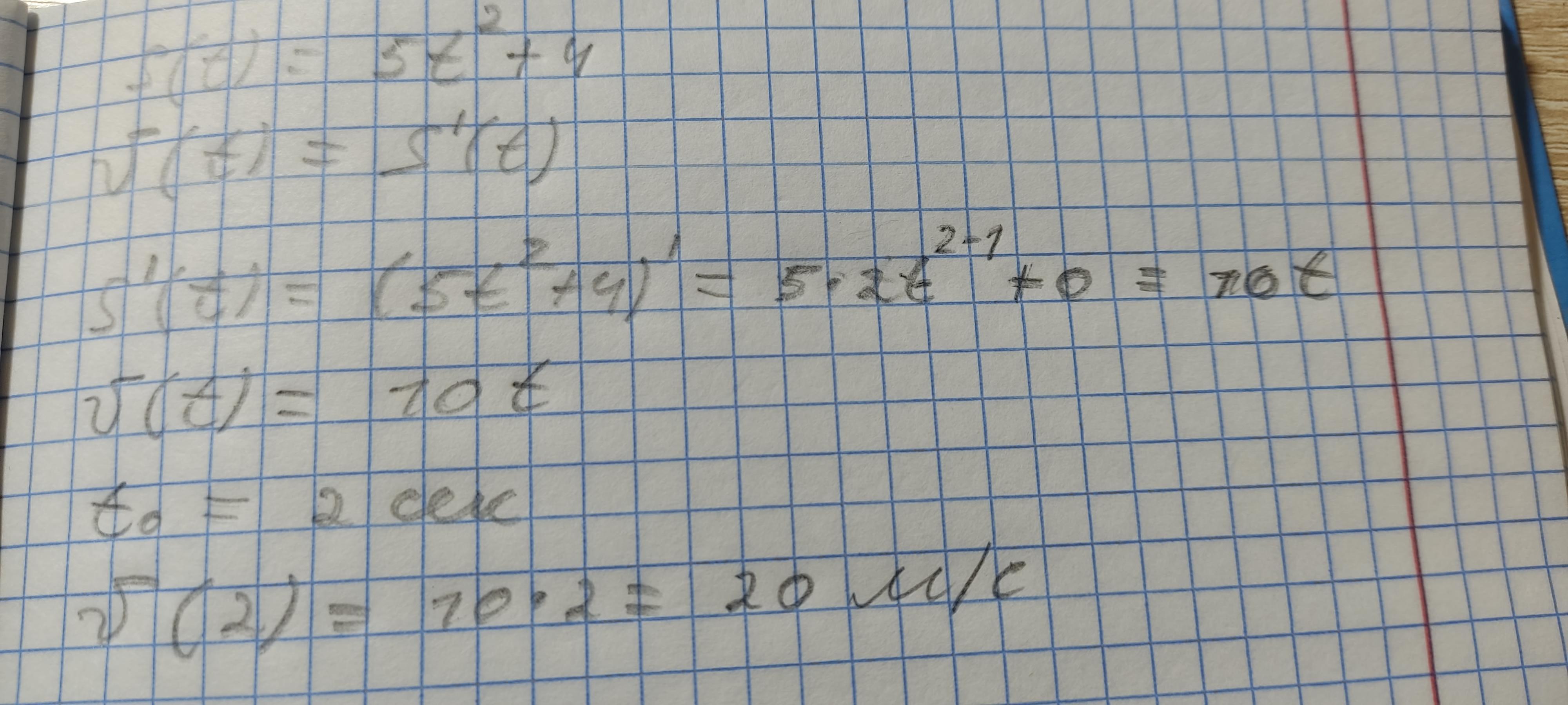 визначте миттєву швидкість руху матеріальної точки в момент часу t0=2с, якщо вона рухається прямолінійно за законом: s(t)=5t²+4