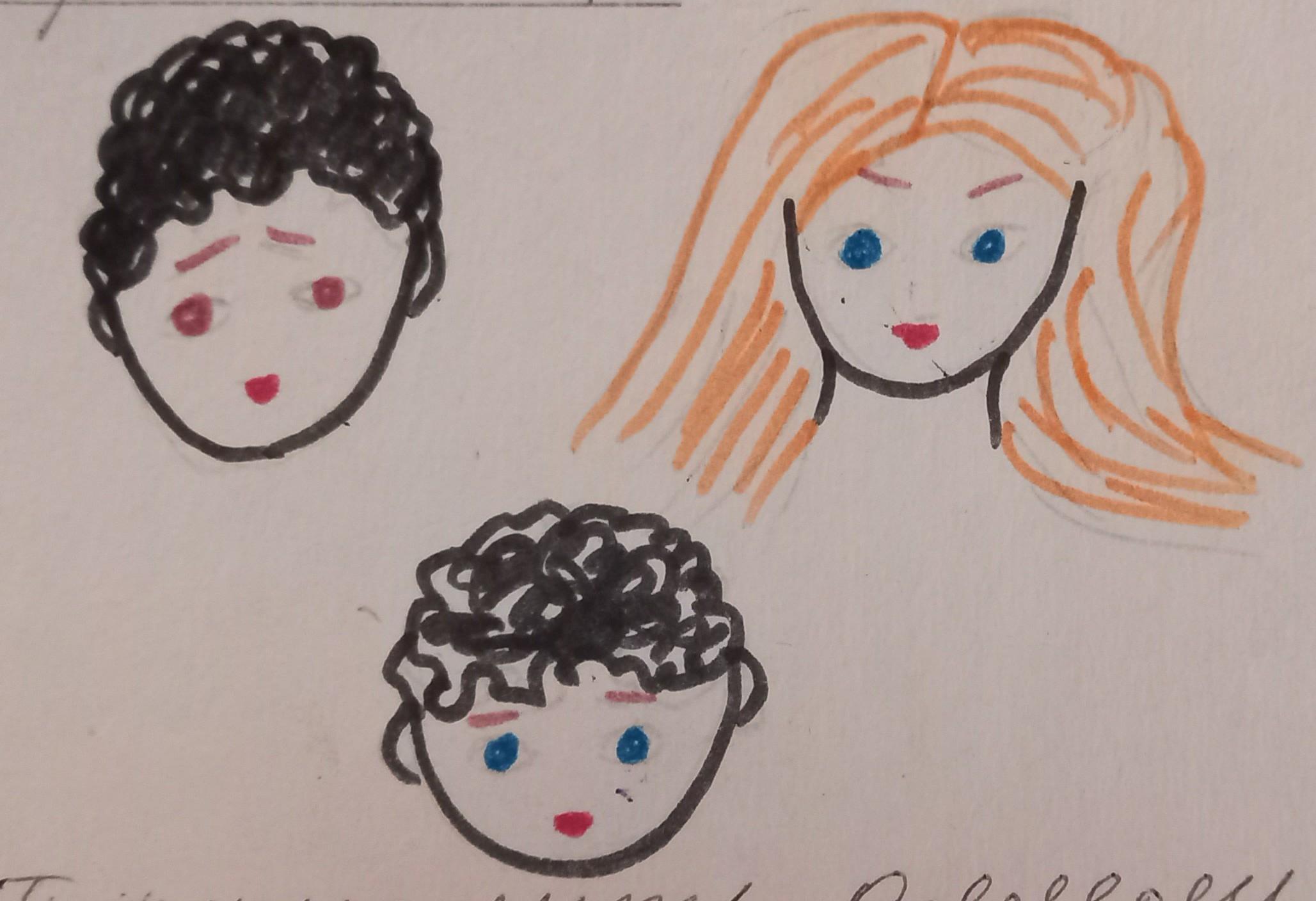 Доминантные признаки: кудрявые волосы и голубые глаза.