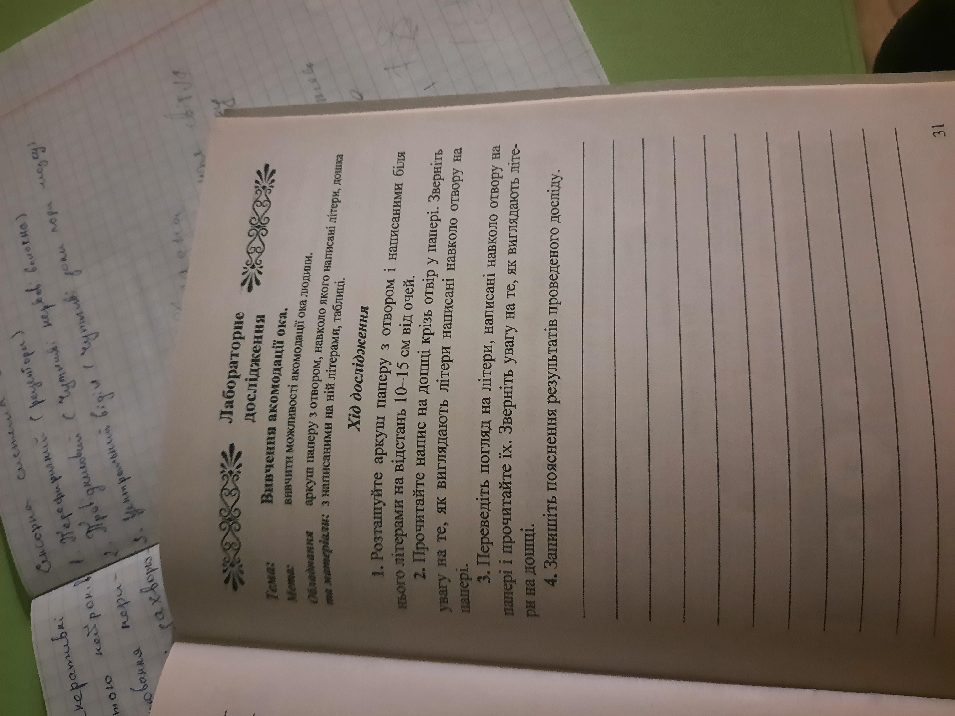 це дослыд на окомодацію ока.Досить легкий. Просто зробити кружечок у аркуші і написати навеоло літери. кружечок невеликий