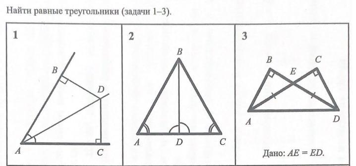 1)Равные треугольники: ABD и CAD