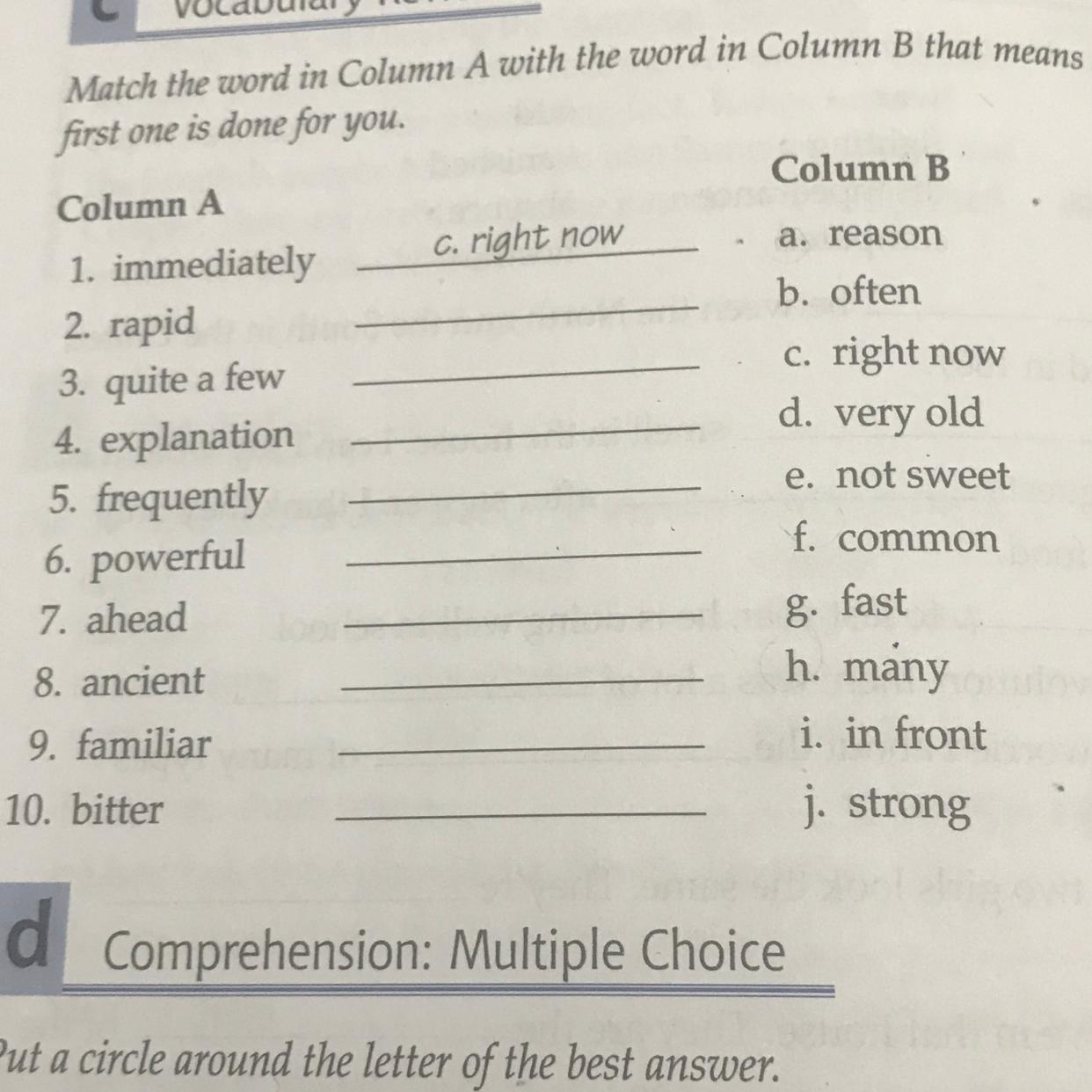 7. i. in front