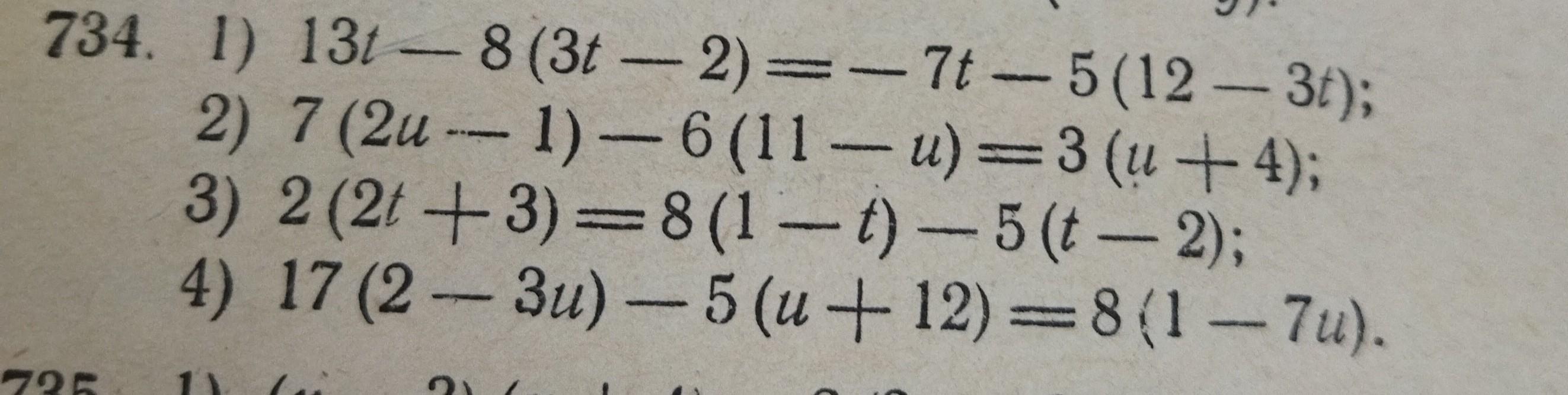 3) 2(2t+3)=8(1-t)-5(t-2)