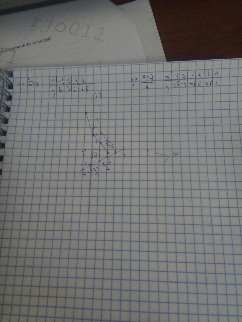 сначала я составила таблицу, потом по таблице-функции, извините что две на одной. 1 функ вроде вида k/х, вторая линейная kx+b