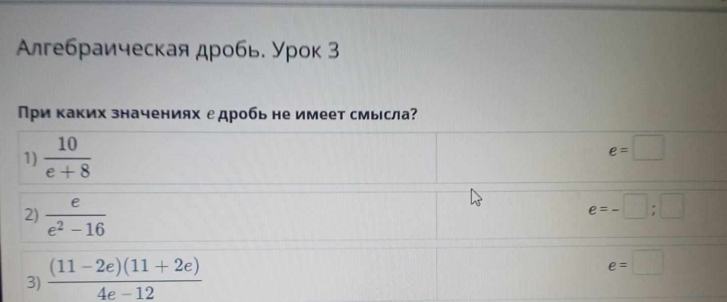 Алгебраическая дробь. Урок 3 При каких значениях е дробь не имеет смысла?