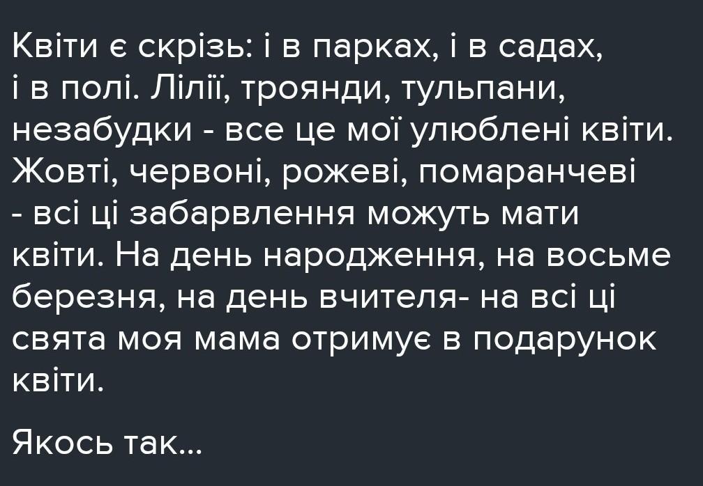 Скласти висловлення «Мої улюблені квіти» з використанням узагальнювальних слів з однорідними членами речення. Обсяг- 1 сторінка. Три абзаци ( вступ, основна частина і кінцівка або висновок)