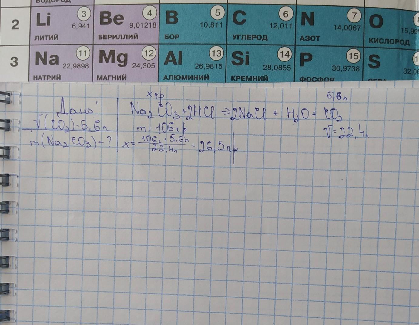 Определить массу карбоната натрия, необходимого для получения 5,6л углекислого газа, полученного в реакции Na2CO3 +HCl = NaCl + H20 +CO2 (не забудь уравнять,т.е. расставить коэффициенты);