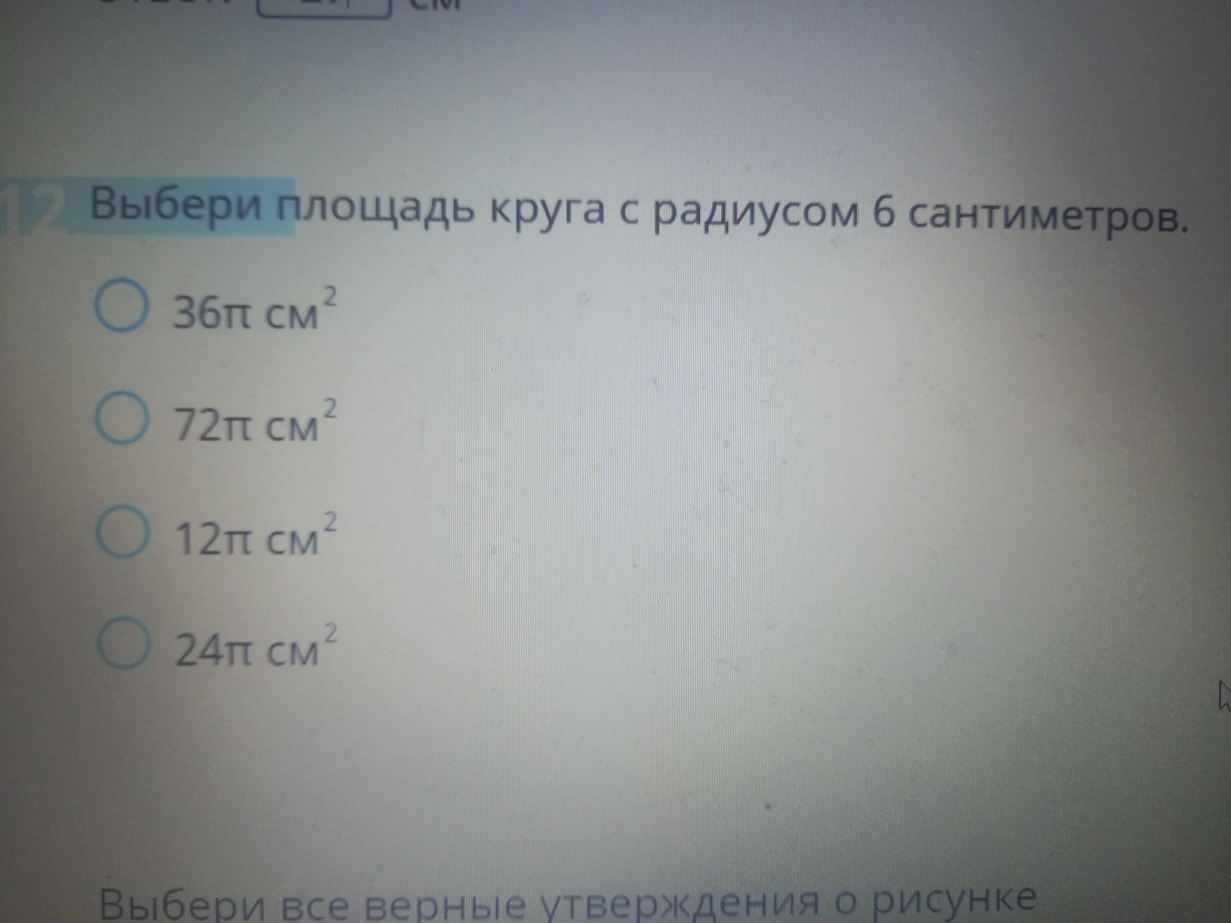 S = π * 6² = 36π (см² ) ; S = 36π см² .