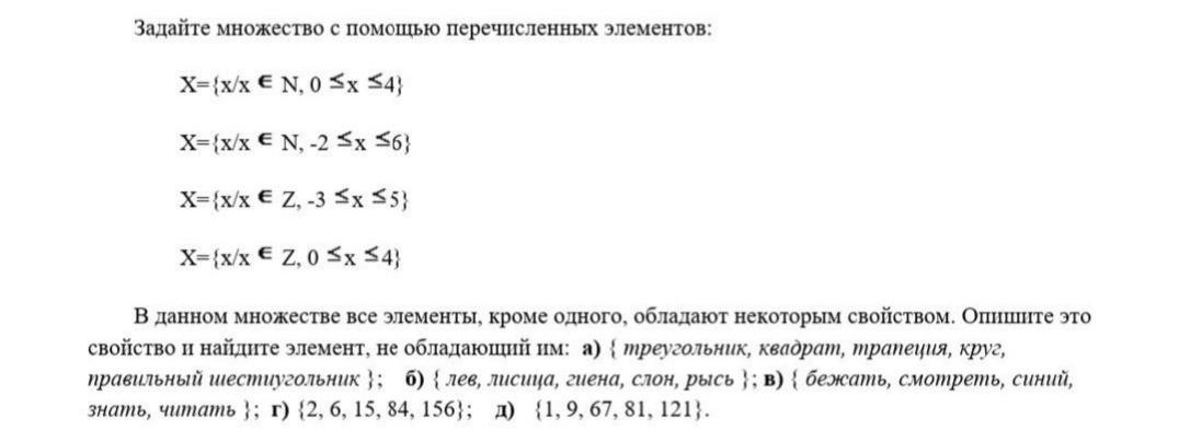 Помогите пожалуйста с "задайте множество с помощью перечисленных элементов"