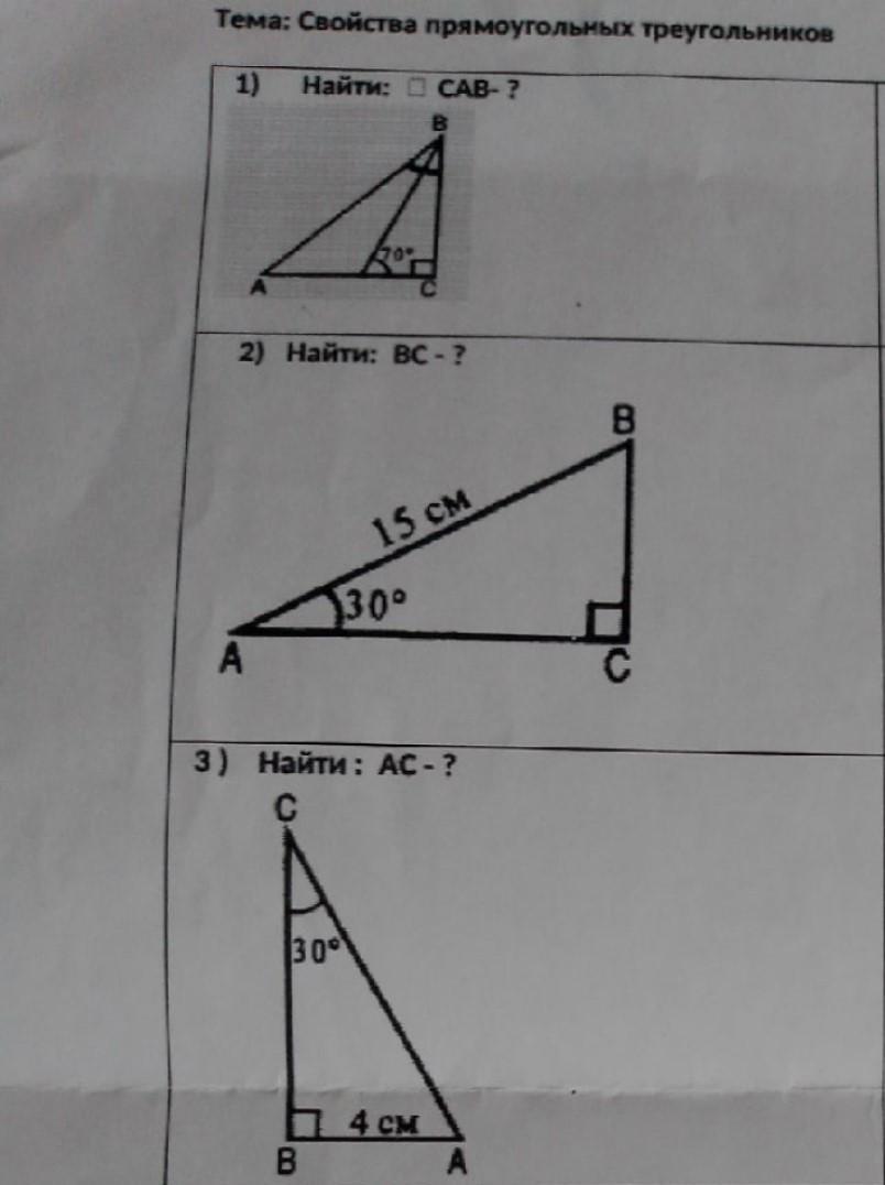 2)В прямоугольном треугольнике катет, лежащий напротив угла в 30° равен половине гипотенузы, отсюда ВС=АВ:2=15:2=7,5см